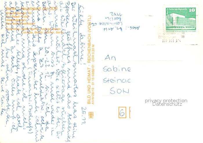 73306006 alte Postkarte Berlin Brandenburger Tor Palasthotel Alexanderplatz Deutsche Staatsoper Hauptstadt der DDR postalisch gelaufen Erhaltung siehe scans [FriedD77] KatCode: 11110011000000