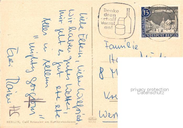 73260013 alte Postkarte Berlin Cafe Kranzler Kurfuerstendamm postalisch gelaufen Erhaltung siehe scans [NatalD47] KatCode: 11110011000000