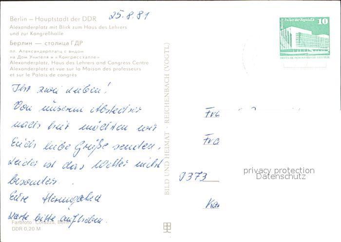 72138740 alte Postkarte BERLIN CITY Alexanderplatz Haus des Lehrers Kongresshalle postalisch gelaufen Erhaltung siehe scans KatCode: 11110011000000