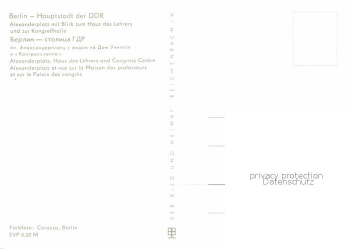 72825183 BERLIN CITY Alexanderplatz Haus des Lehrers Kongresshalle Hauptstadt der DDR postalisch nicht gelaufen Erhaltung siehe scans [FriedD77] KatCode: 11110011000000