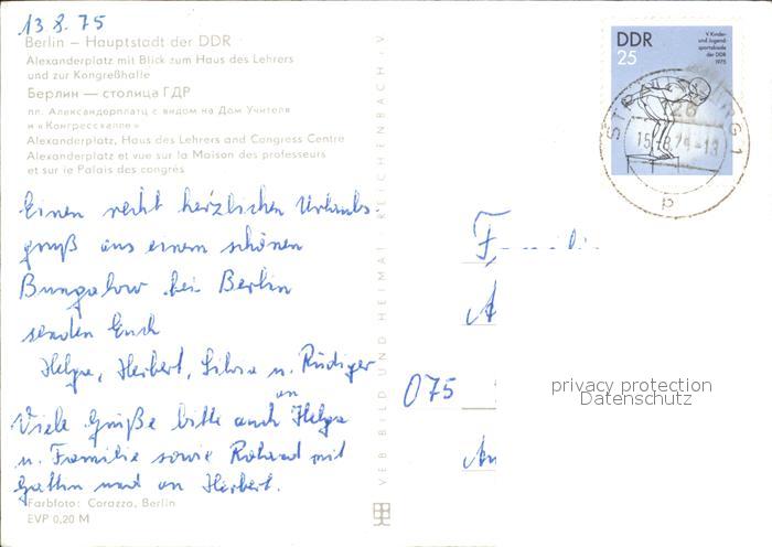 72052760 alte Postkarte BERLIN CITY Alexanderplatz Haus des Lehrers Kongresshalle Hauptstadt der DDR postalisch gelaufen Erhaltung siehe scans KatCode: 11110011000000