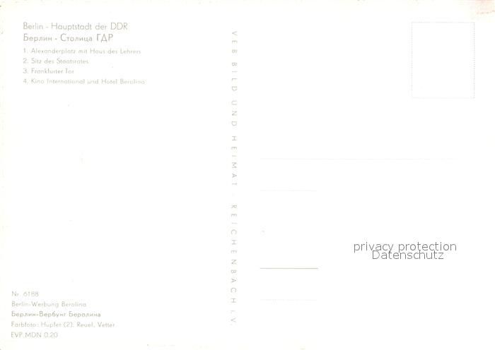 72999413 BERLIN CITY Alexanderplatz Haus des Lehrers Sitz des Staatsrates Frankfurter Tor Kino International und Hotel International postalisch nicht gelaufen Erhaltung siehe scans [WerneD78] KatCode: 11110011000000