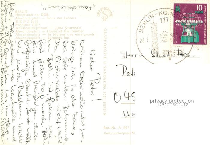 73029862 alte Postkarte BERLIN CITY Alexanderplatz Haus des Lehrers postalisch gelaufen Erhaltung siehe scans [KathaD81] KatCode: 11110011000000