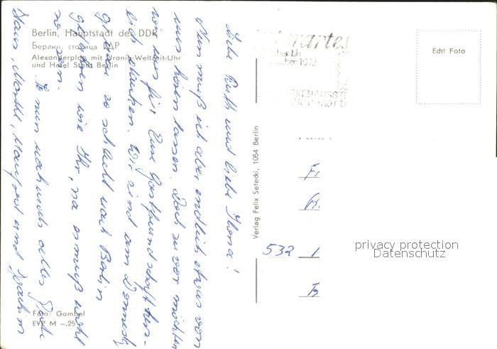 72180205 alte Postkarte BERLIN CITY Alexanderplatz Hotel-Stadt-Berlin Weltzeituhr postalisch gelaufen Erhaltung siehe scans KatCode: 11110011000000