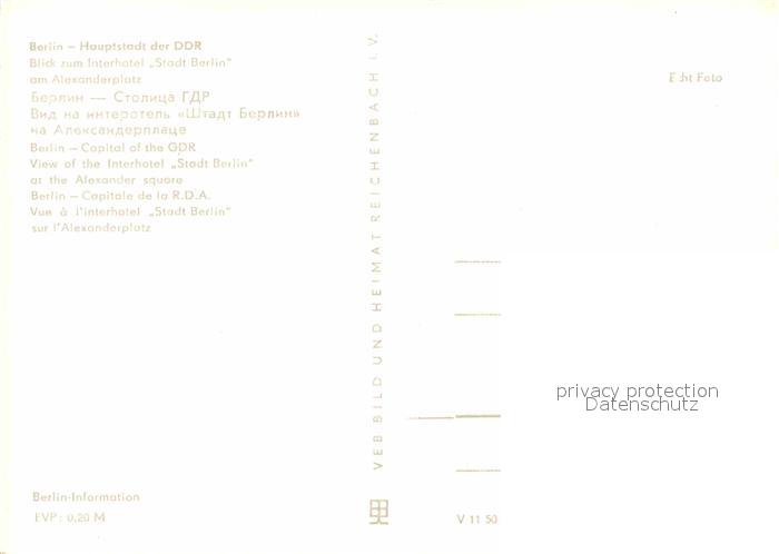 72645857 BERLIN CITY Alexanderplatz mit Interhotel Stadt Berlin postalisch nicht gelaufen Erhaltung siehe scans [LiesaD40] KatCode: 11110011000000