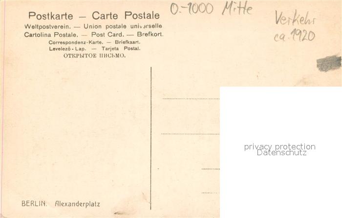 73697154 BERLIN CITY Alexanderplatz Strassenbahn Verkehr Pferdefuhrwerke postalisch nicht gelaufen Erhaltung siehe scans [FriedD77] Frie Katcode 11110011000000