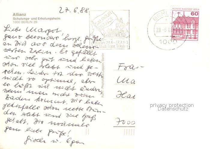 72943908 alte Postkarte BERLIN CITY Allianz Schulungs Erholungsheim postalisch gelaufen Erhaltung siehe scans [KathaD81] KatCode: 11110011000000