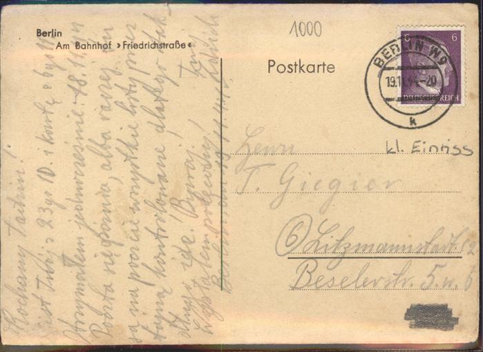 41314596 BERLIN CITY Am Bahnhof Friedrichstrasse postalisch gelaufen Erhaltung mit Maengel Alte Ansichtskarte Postkarte alte Postkarte hz_W Katcode 11110011000000