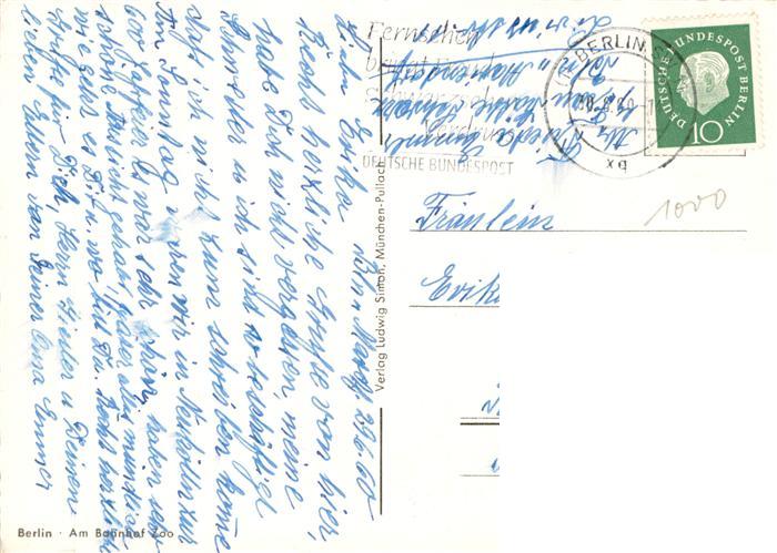 73917698 BERLIN CITY Am Bahnhof Zoo postalisch gelaufen Erhaltung siehe scans [FriedD77] alte Postkarte Frie Katcode 11110011000000