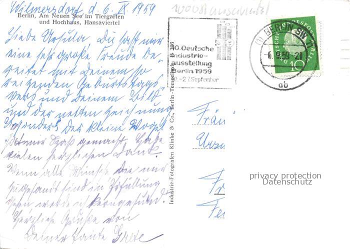 BERLIN CITY Am Neuen See im Tiergarten und Hochhaus Hansaviertel postalisch gelaufen Erhaltung siehe scans [WerneD78] alte Postkarte Wern Katcode 11110011000000