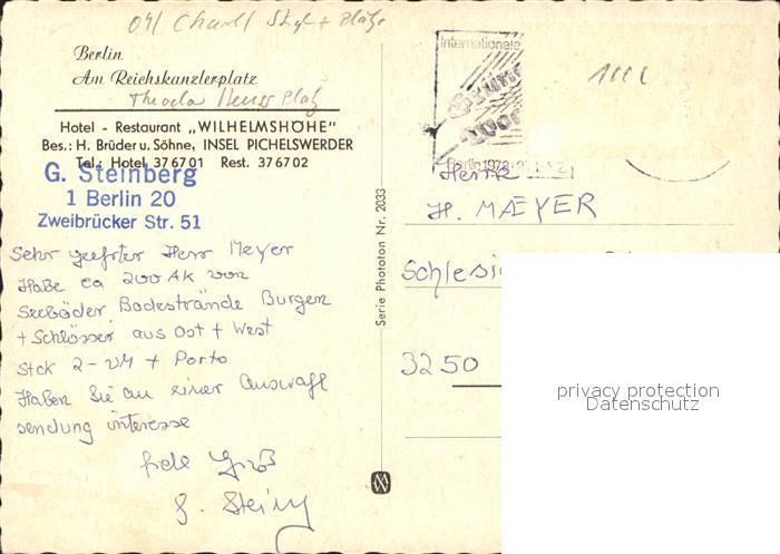 41598638 BERLIN CITY Am Reichskanzlerplatz Hotel Restaurant Wilhelmshoehe postalisch gelaufen Erhaltung siehe scans Alte Ansichtskarte Postkarte alte Postkarte hz_F Katcode 11110011000000