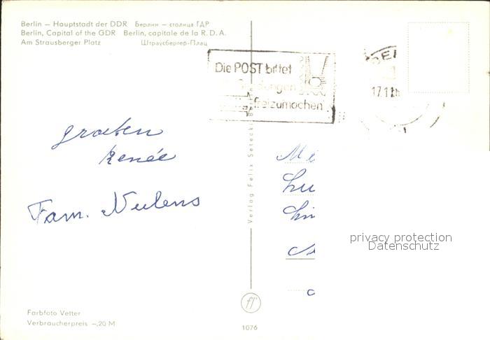 72139529 alte Postkarte BERLIN CITY Am Straussberger Platz Wasserspiele postalisch gelaufen Erhaltung siehe scans KatCode: 11110011000000