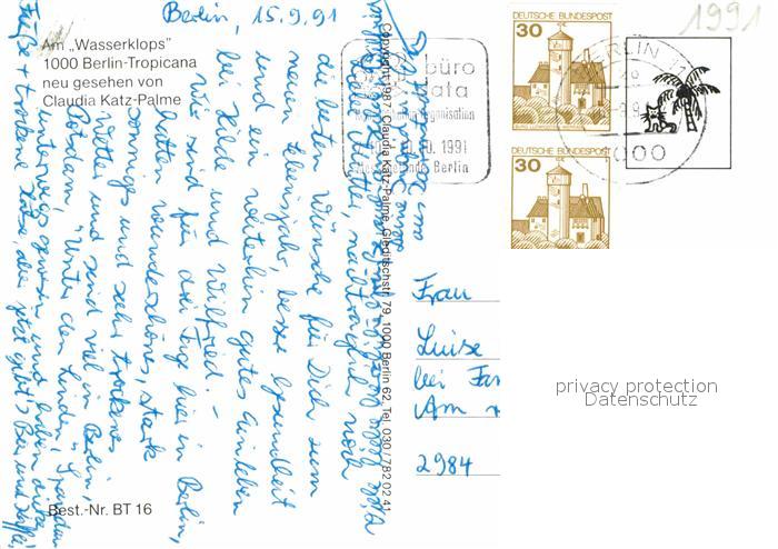 72862763 alte Postkarte BERLIN CITY Am Wasserklops Tropicana postalisch gelaufen Erhaltung siehe scans [WerneD78] KatCode: 11110011000000