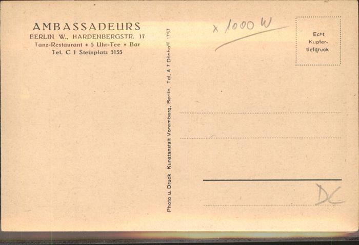 41039070 BERLIN CITY Ambassadeurs postalisch nicht gelaufen Alte Ansichtskarte Postkarte Chri Katcode 11110011000000