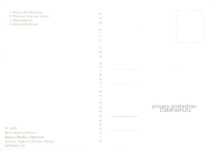 72998396 BERLIN CITY Amtssitz des Staatsrates Mahnmal Unter den Linden Alexanderplatz Deutsche Staatsoper postalisch nicht gelaufen Erhaltung siehe scans [WerneD78] KatCode: 11110011000000