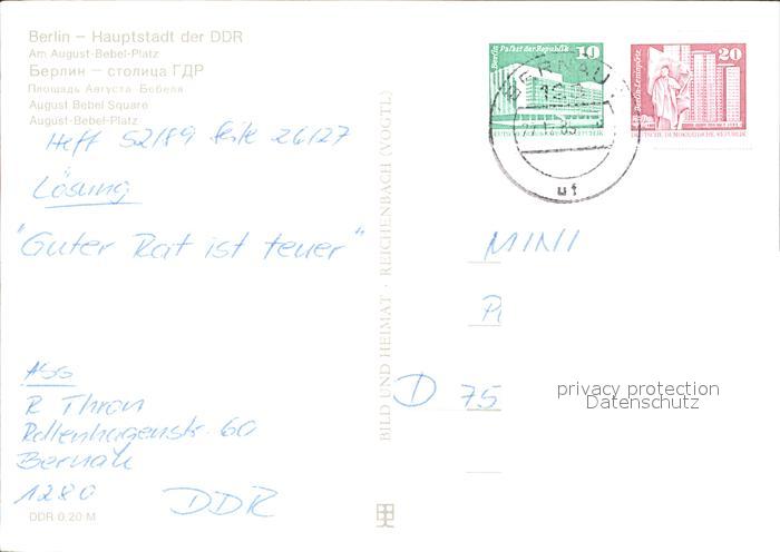 72381508 alte Postkarte BERLIN CITY August Bebel Platz postalisch gelaufen Erhaltung siehe scans KatCode: 11110011000000