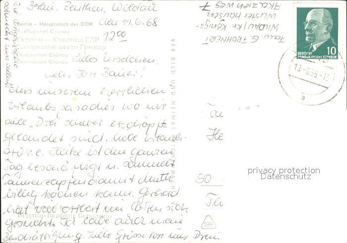 72152527 alte Postkarte BERLIN CITY Ausflugsziel Gruenau Segelpartie postalisch gelaufen Erhaltung siehe scans KatCode: 11110011000000