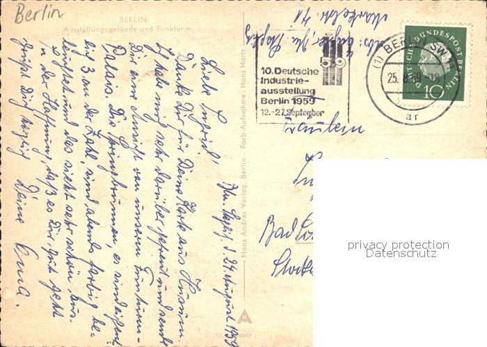 72479329 alte Postkarte BERLIN CITY Ausstellungsgelaende am Funkturm postalisch gelaufen Erhaltung siehe scans KatCode: 11110011000000