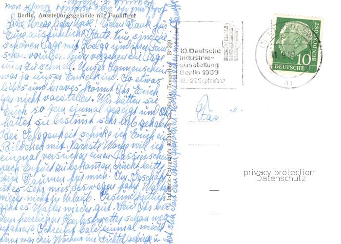 72929203 alte Postkarte BERLIN CITY Ausstellungsgelaende mit Funkturm postalisch gelaufen Erhaltung siehe scans [AndreD76] KatCode: 11110011000000