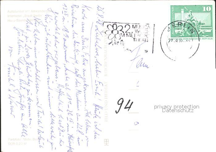 72026765 alte Postkarte BERLIN CITY Autotunnel Alexanderplatz Interhotel Stadt Berlin postalisch gelaufen Erhaltung siehe scans KatCode: 11110011000000