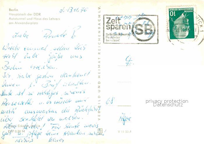 72821606 alte Postkarte BERLIN CITY Autotunnel und Haus des Lehrers postalisch gelaufen Erhaltung siehe scans [AndreD76] KatCode: 11110011000000
