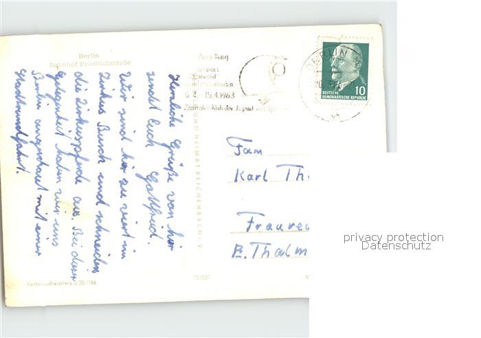 72362019 alte Postkarte BERLIN CITY Bahnhof Friedrichstrasse postalisch gelaufen Erhaltung siehe scans KatCode: 11110011000000