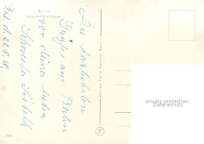 43506539 BERLIN CITY Bahnhof Friedrichstrasse postalisch nicht gelaufen Erhaltung siehe scans [KathaD81] Kath Katcode 11110011000000