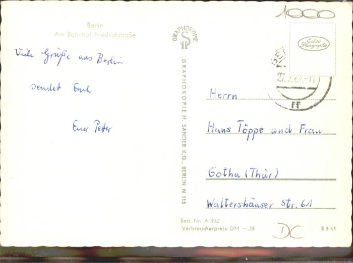 41035782 BERLIN CITY Bahnhof Friedrichstrasse postalisch gelaufen Alte Ansichtskarte Postkarte alte Postkarte Chri Katcode 11110011000000