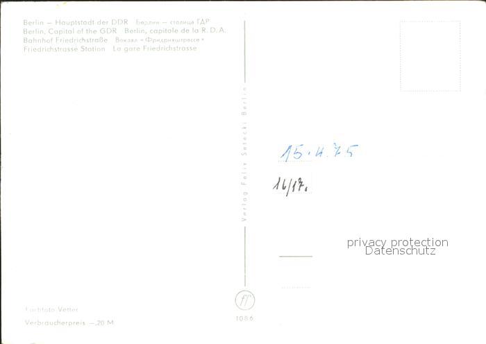 72285589 BERLIN CITY Bahnhof Friedrichstrasse Hauptstadt der DDR postalisch nicht gelaufen Erhaltung siehe scans KatCode: 11110011000000
