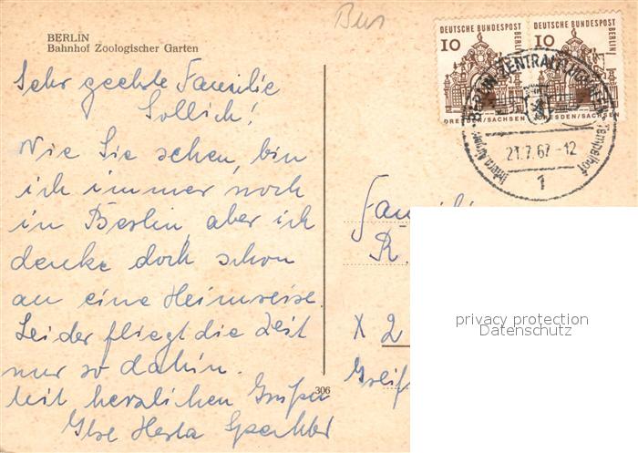 73120048 alte Postkarte BERLIN CITY Bahnhof Zoo postalisch gelaufen Erhaltung siehe scans [KathaD81] KatCode: 11110011000000
