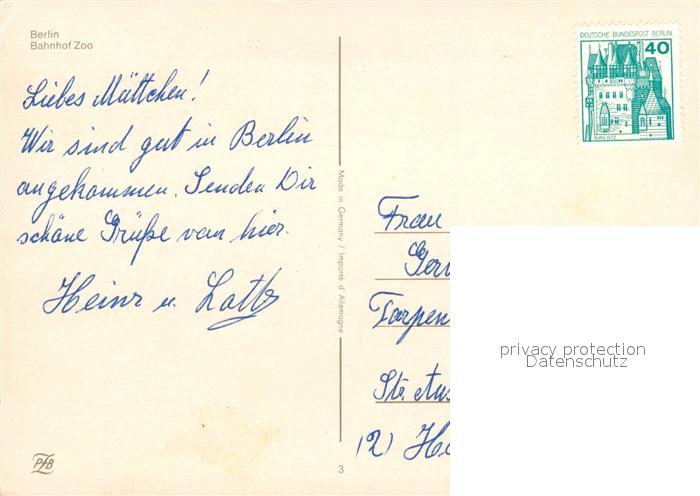 73132941 BERLIN CITY Bahnhof Zoo Doppeldeckerbus postalisch nicht gelaufen Erhaltung siehe scans [FriedD77] KatCode: 11110011000000