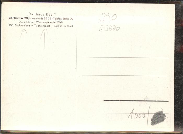 41080070 BERLIN CITY Ballhaus Resi postalisch nicht gelaufen Alte Ansichtskarte Postkarte Elvi Katcode 11110011000000