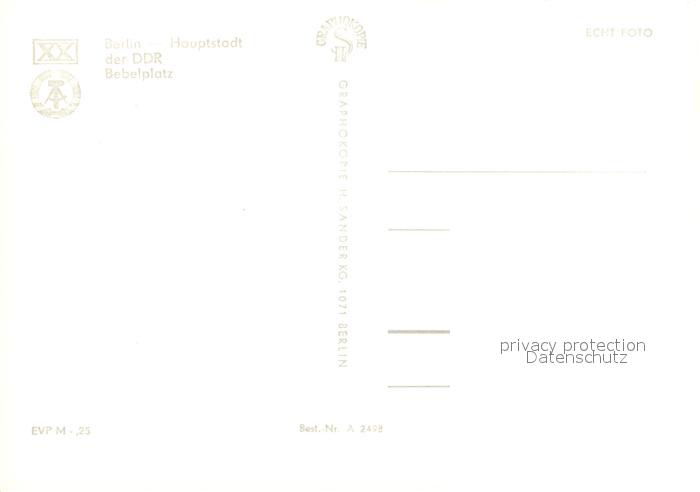 72963071 BERLIN CITY Bebelplatz postalisch nicht gelaufen Erhaltung siehe scans [LiesaD40] KatCode: 11110011000000