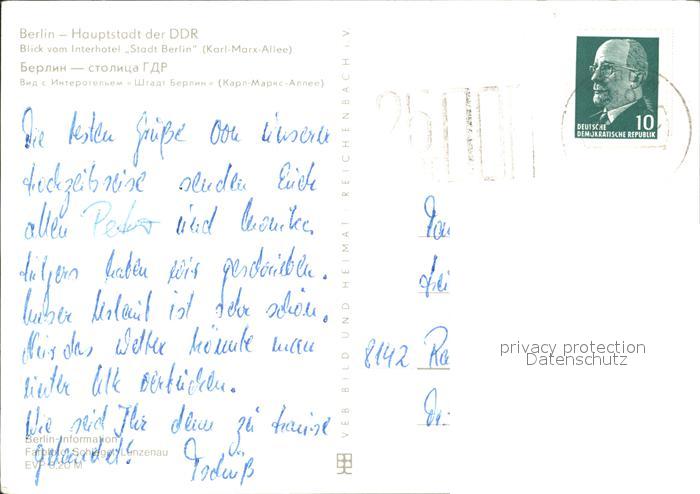 72414006 alte Postkarte BERLIN CITY bei Nacht Blick vom Interhotel Stadt Berlin Karl Marx Allee postalisch gelaufen Erhaltung siehe scans KatCode: 11110011000000