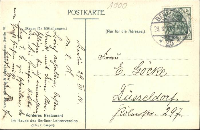 40989045 BERLIN CITY Berliner Lehrerverein postalisch gelaufen Alte Ansichtskarte Postkarte alte Postkarte Katcode 11110011000000
