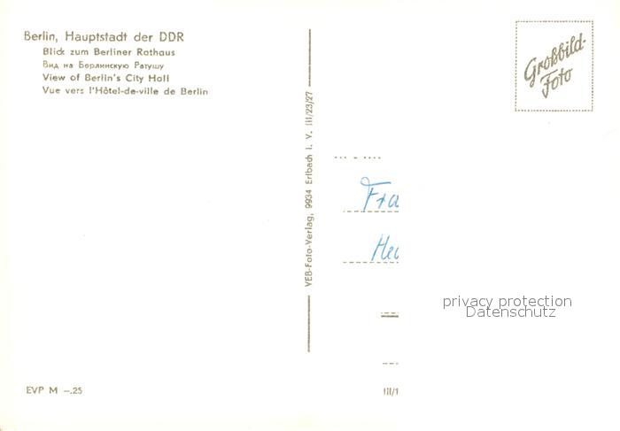 73139306 BERLIN CITY Berliner Rathaus postalisch nicht gelaufen Erhaltung siehe scans [NatalD47] KatCode: 11110011000000