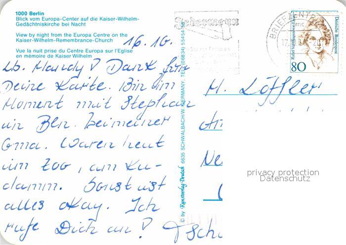 72616761 alte Postkarte BERLIN CITY Blick vom Europa Center auf die Kaiser Wilhelm Gedaechtniskirche postalisch gelaufen Erhaltung siehe scans [WerneD78] KatCode: 11110011000000