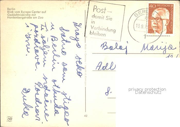 72148657 alte Postkarte BERLIN CITY Blick vom Europa-Center auf Gedaechtniskirche Hardenbergstrasse am Zoo postalisch gelaufen Erhaltung siehe scans KatCode: 11110011000000