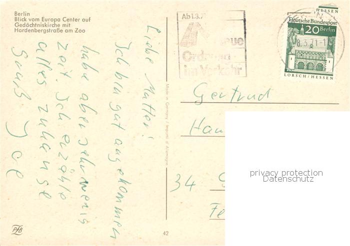 73774762 BERLIN CITY Blick vom Europa Center auf Gedaechtniskirche mit Hardenbergstrasse am Zoo Fliegeraufnahme postalisch gelaufen Erhaltung siehe scans [WerneD78] alte Postkarte Wern Katcode 11110011000000