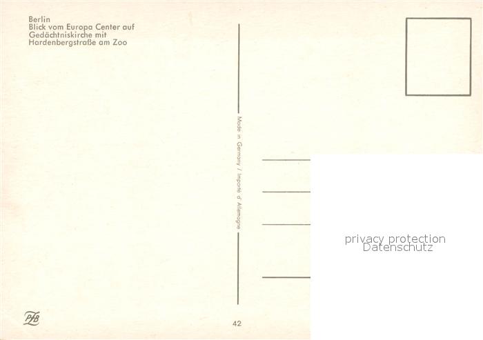 73668254 BERLIN CITY Blick vom Europacenter auf die Kaiser Wilhelm Gedaechtniskirche mit Hardenbergstrasse postalisch nicht gelaufen Erhaltung siehe scans [WerneD78] Wern Katcode 11110011000000