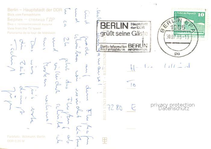 73683881 BERLIN CITY Blick vom Fernsehturm postalisch gelaufen Erhaltung siehe scans [LiesaD40] alte Postkarte Lies Katcode 11110011000000