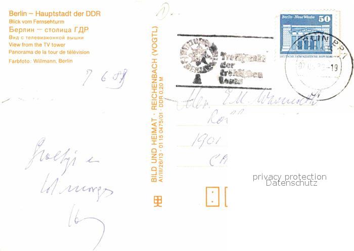 72844826 alte Postkarte BERLIN CITY Blick vom Fernsehturm bei Nacht postalisch gelaufen Erhaltung siehe scans [LiesaD40] KatCode: 11110011000000