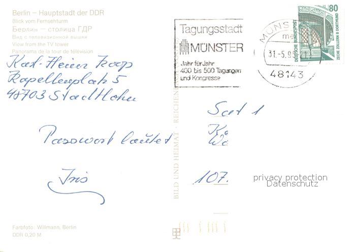 73734507 BERLIN CITY Blick vom Fernsehturm bei Nacht postalisch gelaufen Erhaltung siehe scans [FriedD77] alte Postkarte Frie Katcode 11110011000000
