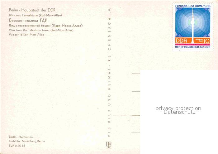 72788018 BERLIN CITY Blick vom Fernsehturm Karl Marx Allee Hauptstadt der DDR Nachtaufnahme postalisch nicht gelaufen Erhaltung siehe scans [FriedD77] KatCode: 11110011000000