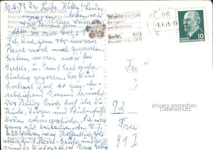 72034572 alte Postkarte BERLIN CITY Blick vom Fernsehturm Karl Marx Allee Hauptstadt der DDR postalisch gelaufen Erhaltung siehe scans KatCode: 11110011000000