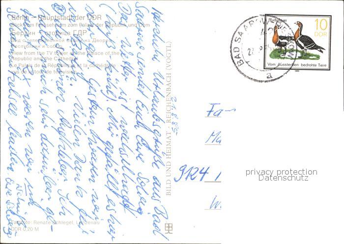 72324558 alte Postkarte BERLIN CITY Blick vom Fernsehturm zum Palast der Republik postalisch gelaufen Erhaltung siehe scans KatCode: 11110011000000