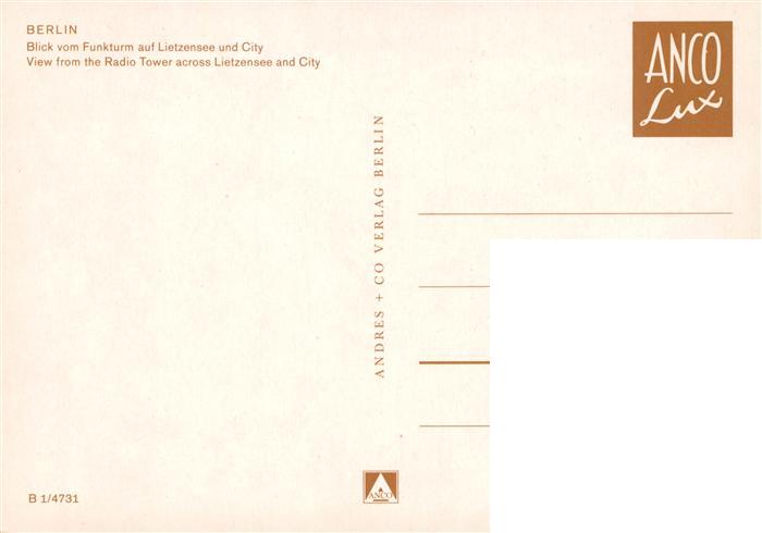 73893925 BERLIN CITY Blick vom Funkturm auf Lietzensee und City postalisch nicht gelaufen Erhaltung siehe scans [WerneD78] Wern Katcode 11110011000000