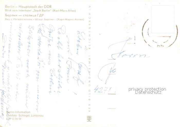 73711967 BERLIN CITY Blick vom Interhotel Stadt Berlin auf Karl Marx Allee postalisch gelaufen Erhaltung siehe scans [WerneD78] alte Postkarte Wern Katcode 11110011000000