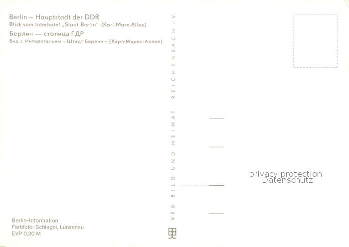72998209 BERLIN CITY Blick vom Interhotel Stadt Berlin mit Karl Marx Allee postalisch nicht gelaufen Erhaltung siehe scans [WerneD78] KatCode: 11110011000000