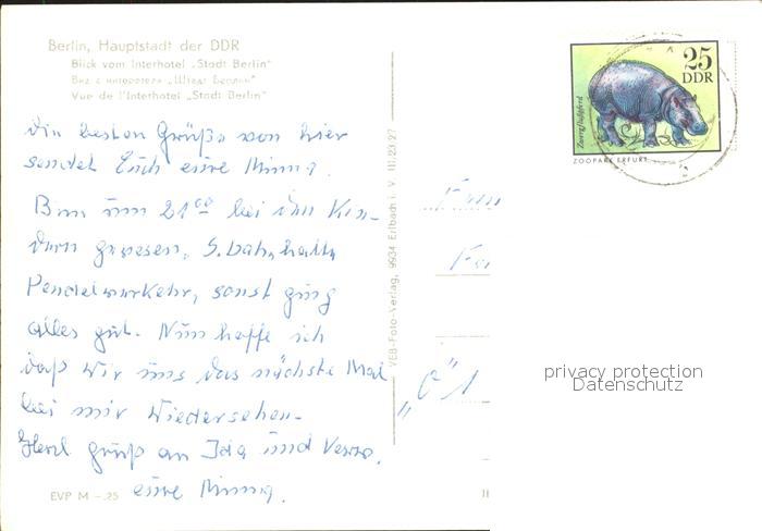 72131684 alte Postkarte BERLIN CITY Blick vom Interhotel Stadt Berlin postalisch gelaufen Erhaltung siehe scans KatCode: 11110011000000